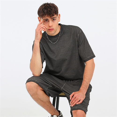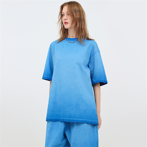 Retro gradient distressed American style pure cotton drop shoulder men's plus size short-sleeved T-shirt